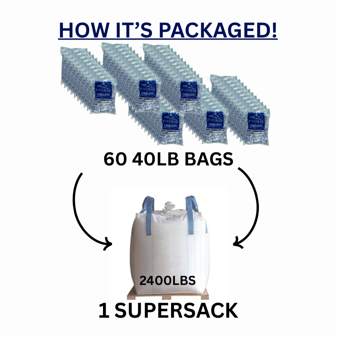 - All rock comes in 40lb bags packaged in 1 large super sack